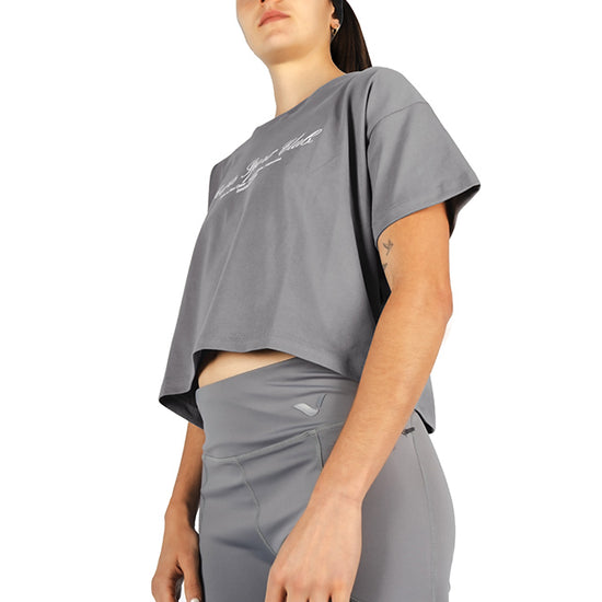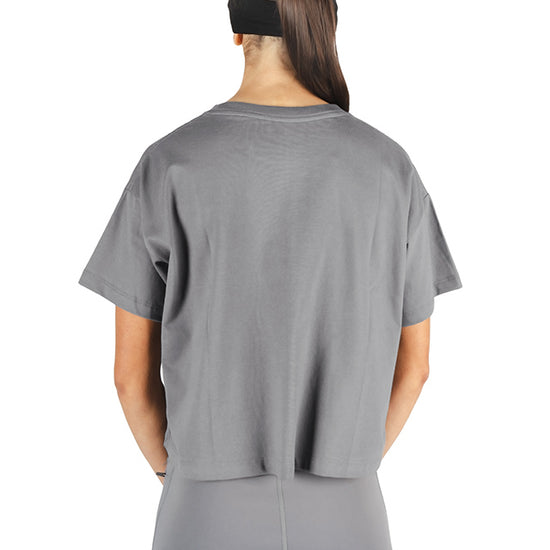 Short-sleeved cropped T-shirt with a loose fit and made from 100% cotton jersey. Its lightweight, breathable fabric makes it ideal for everyday wear. The front print adds just the right touch of urban style to complete a comfortable and stylish look.